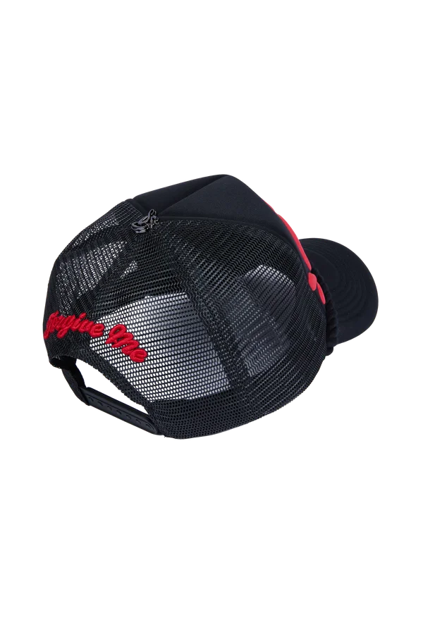 Crafted from high-quality cotton and breathable mesh, these caps provide a lightweight, comfortable fit all day long. The adjustable snapback ensures a one-size-fits-most fit, while the structured front panel maintains a crisp, modern shape. Whether paired with hoodies, t-shirts, or streetwear jackets, the Forgive Me Syna Trucker Cap deliver style, versatility, and authenticity.