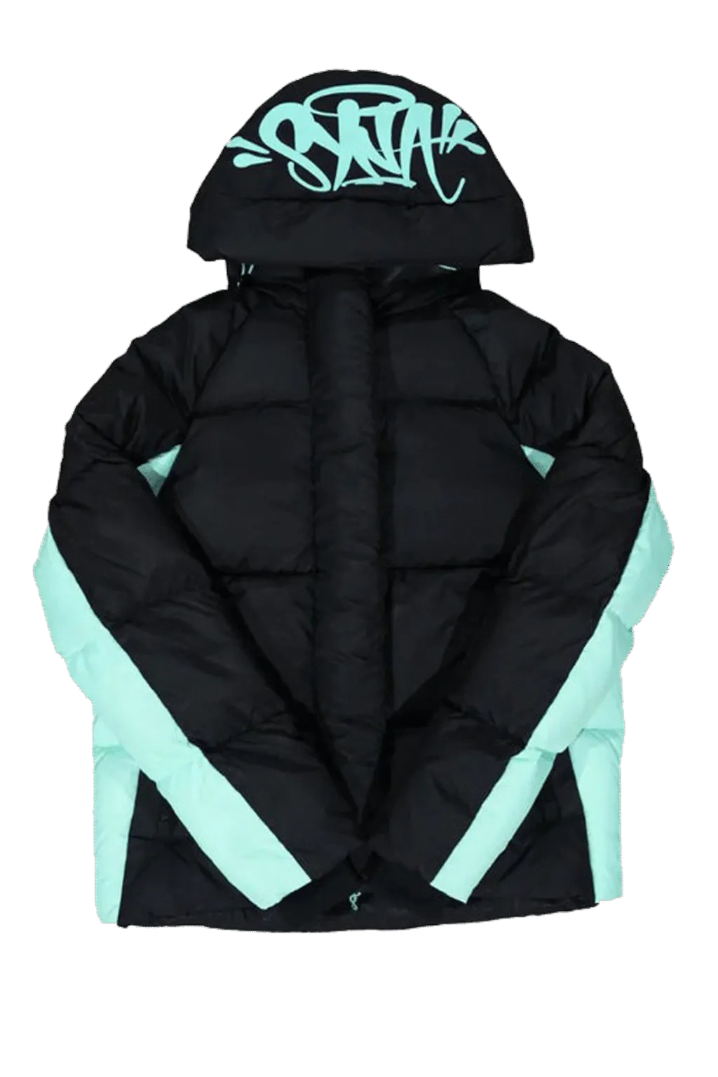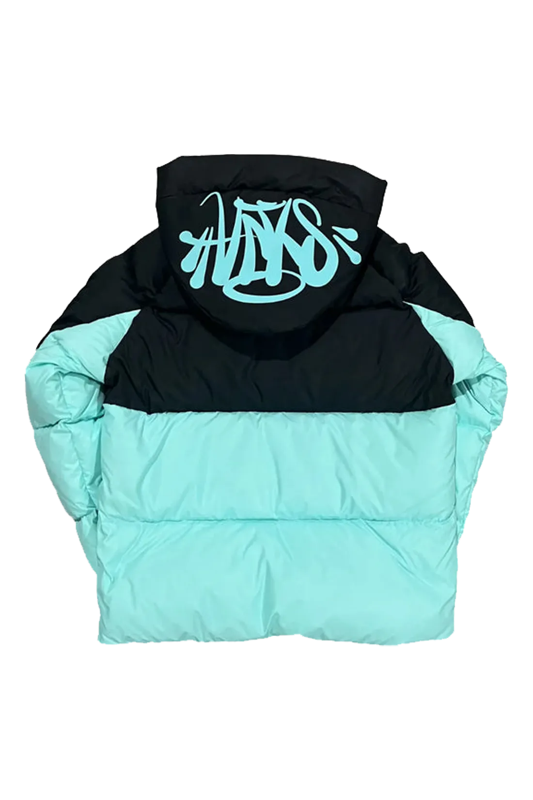Syna World Logo Puffer Jacket – Black/Sky Blue